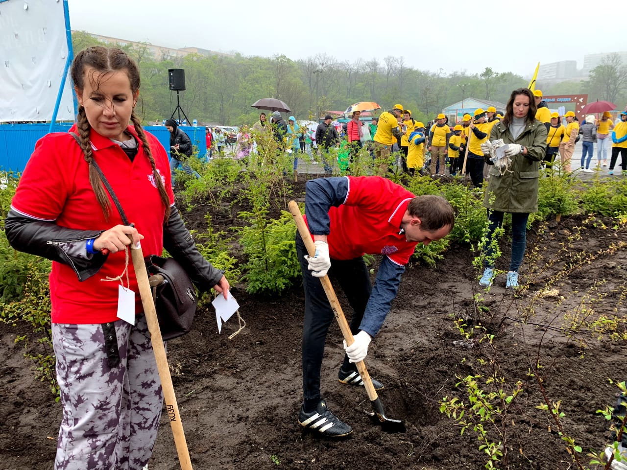 Всего в рамках акции на территории высажены около 750 деревьев и кустарников. В скором времени в парке зацветут кусты сакуры, сирени, кизильника, черемуховые аллеи и ели.