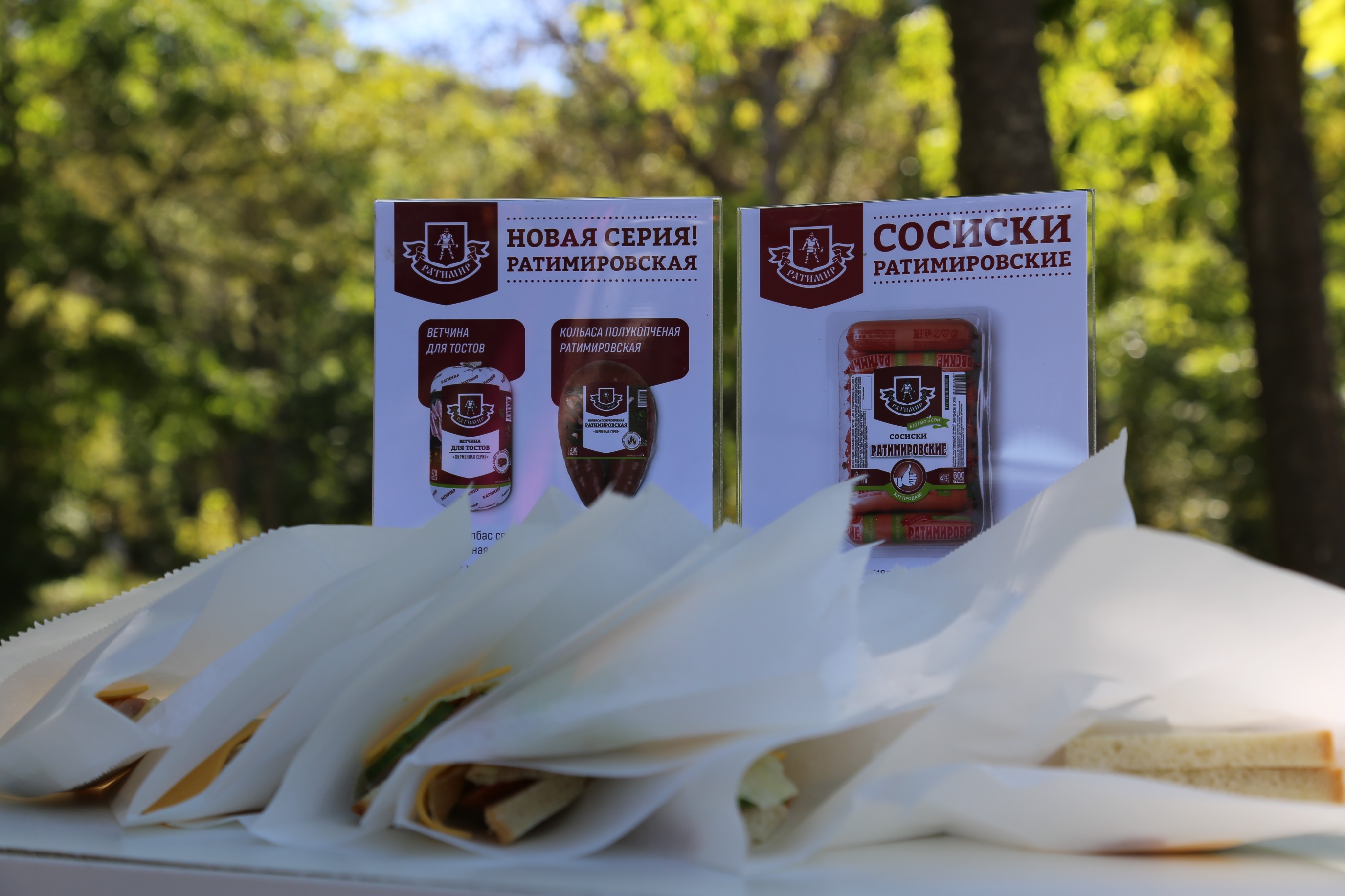 А «хэдлайнером» праздника на площадке «Ратимира» стали вкуснейшие сэндвичи и сочные ароматные сосиски, приготовленные из продукции новой фирменной серии «Ратимировская»!