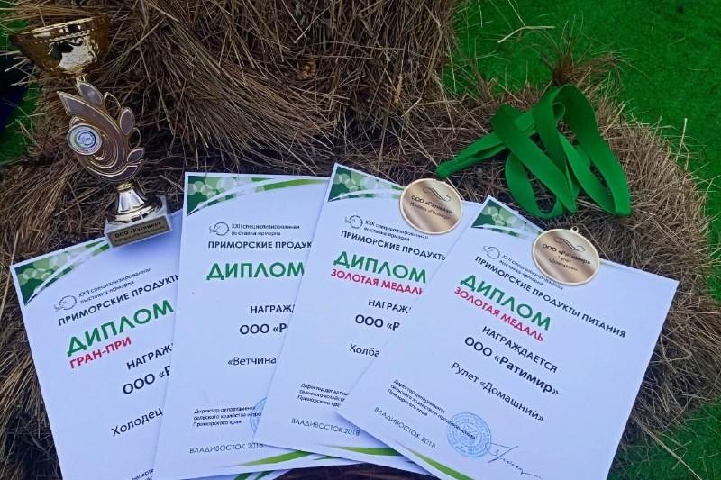 Теперь эта продукция имеет право маркироваться знаком «Лучший товар Приморья» в течение двух лет. Также, на выставке Приморские продукты питания наградами были отмечены следующие продукты: Ветчина "Для завтрака"-диплом, Рулет "Домашний" и Сервелат «Ратимир» -золотые медали, Холодец «Ратимировский» получил высшую награду - кубок ГРАН- ПРИ!